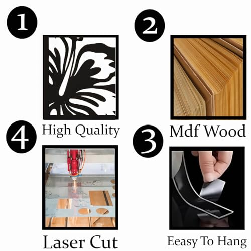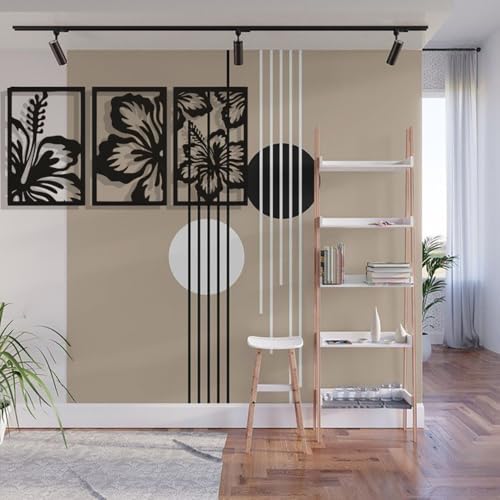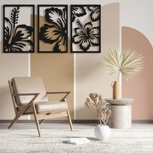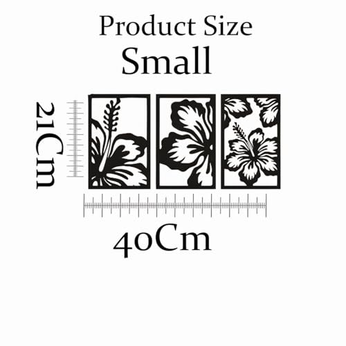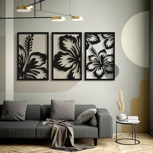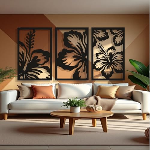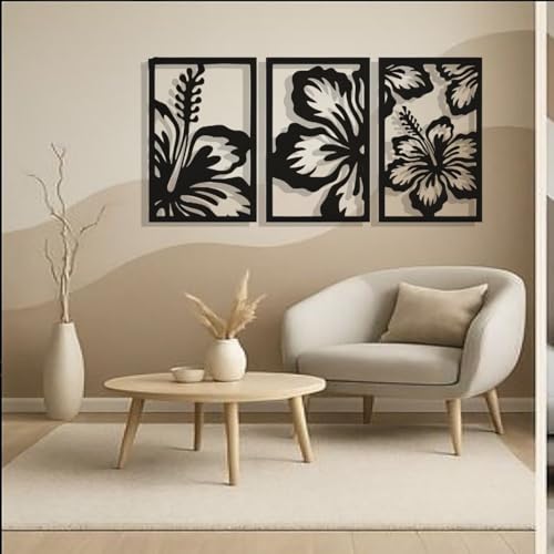 Generic - تحفة فنية جدارية حديثة من المعدن الأسود بشكل زهرة الكركديه، بإطار من خشب الـ MDF مقصوص بالليزر، ديكور منزلي استوائي لغرفة المعيشة، تصميم زهور، 3 قطع، سمول