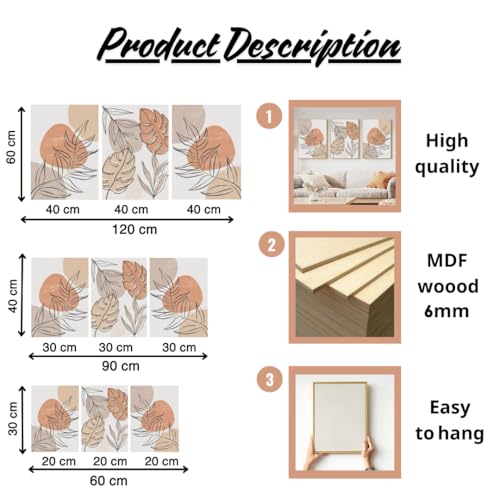 Generic - Modern Botanical Wall Art Set, 3-Piece MDF Prints, Minimalist Leaf Design, 60x120cm/90x40cm/60x30cm (40 x 60 cm)