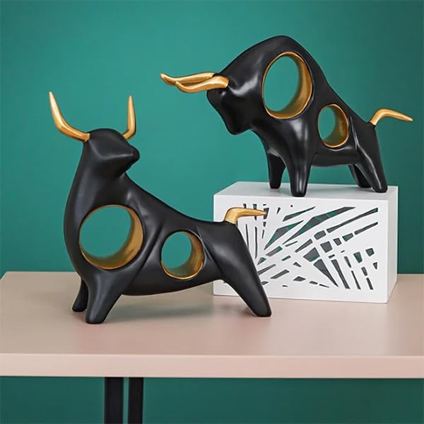 Generic - منحوتة عصرية على شكل ثور بلون اسود وذهبي، ارتفاع 30 سم، ديكور منزلي معاصر