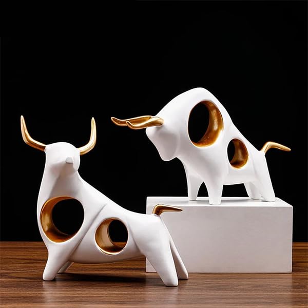 Generic - Modern Bull Sculpture, White and Gold Decorative Figurine, 30 cm Contemporary Art Statue