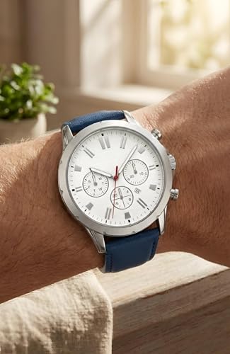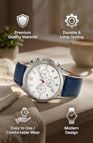 Generic - Modern Business Watch - Chronograph with engraved metallic case and dial, luxurious multi-colour leather strap, date indicator, seamless blend of elegance and functionality.