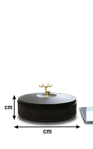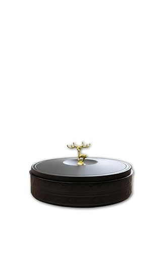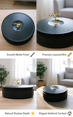 - بقطر 27 سم وارتفاع إجمالي 13 سم (هيكل 7 سم + غطاء مزخرف 6 سم)، يوفر مساحة تخزين كبيرة دون شغل مساحة كبيرة، مثالي لطاولات القهوة أو الألواح الجانبية أو العروض الاحتفالية في المنازل عبر الثقافات.