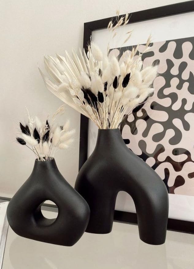 Generic - مزهريات سيراميك عصرية، مزهريات مزخرفة سوداء غير لامعة للزهور المجففة، ديكور غرفة المعيشة