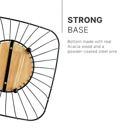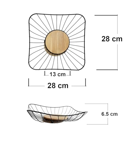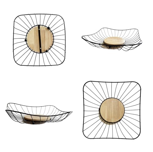 Generic - Modern Decorative Fruit / Candy / Snacks / Bread Basket Collection – Metal and Wood Countertop Bowls with Open Air Design Ideal for Kitchen & Dining Room (Metal / Wood)