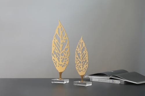Generic - Modern Decorative Gold Leaf Sculpture, Metal Art with Clear Acrylic Base, Contemporary Desktop Decor for Home, Office