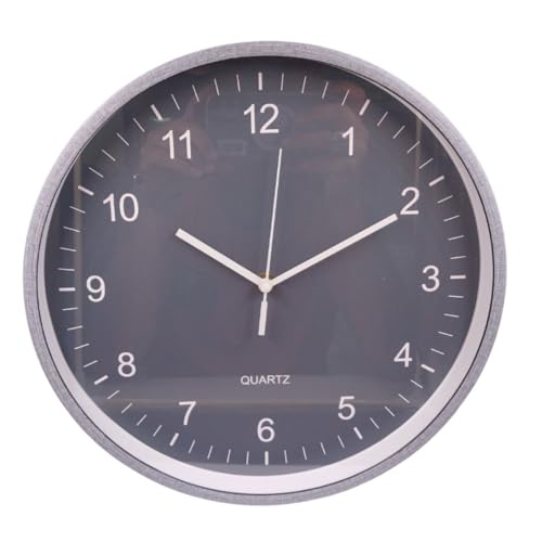 - ساعة جدار بحركة كوارتز دائرية عصرية مزخرفة، تأتي مع شاشة عرض أنالوج كبيرة، تعمل بالبطارية، مخصصة للمنازل والمكاتب، مقاس 30 سم رمادي مع إطار يشبه النسيج، موديل ck19