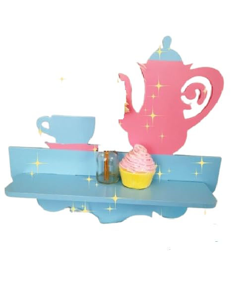Generic - Modern Decorative Wooden Wall Shelf with Teapot Shape - Blue and Pink