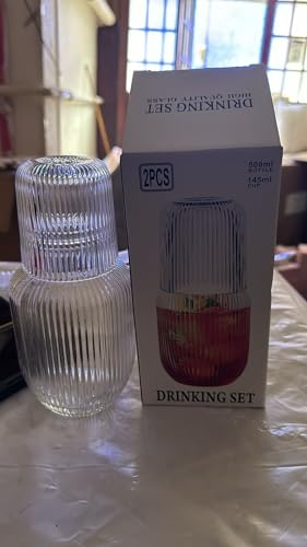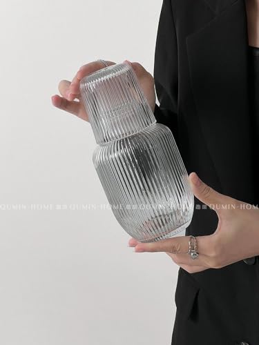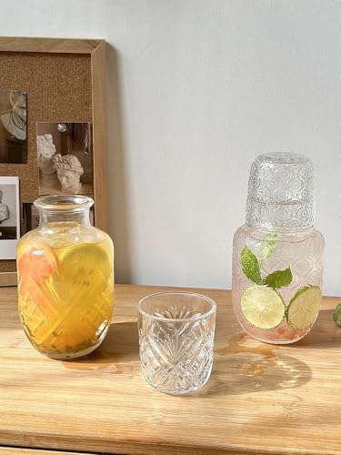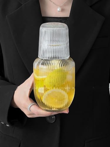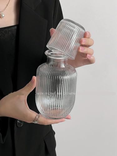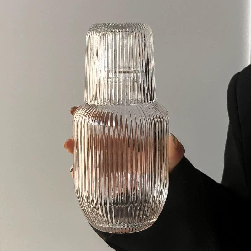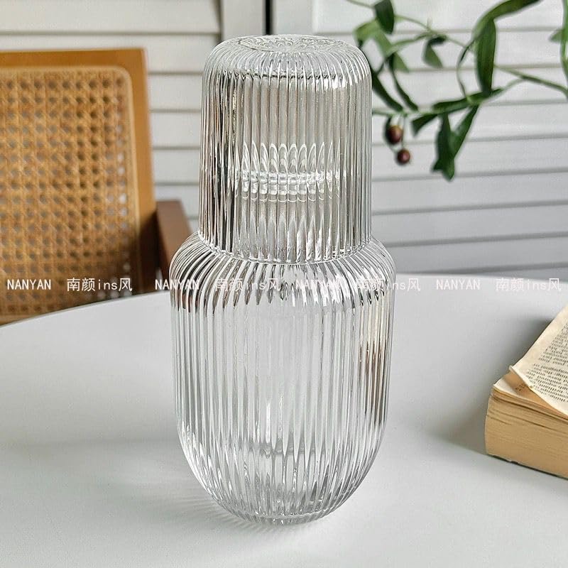 Generic - ابريق ماء زجاجي شفاف بتصميم عصري مع كوب زجاجي لجانب السرير (شكل 3)