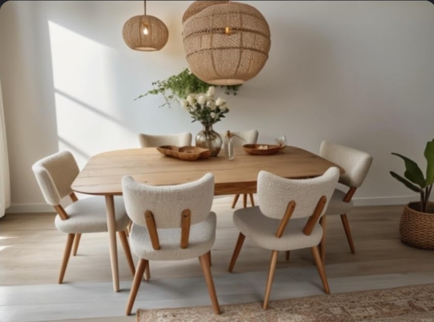 Generic - Modern Dining Chair Set, White Bouclé Fabric, Wooden Legs, 75 cm x 150 cm