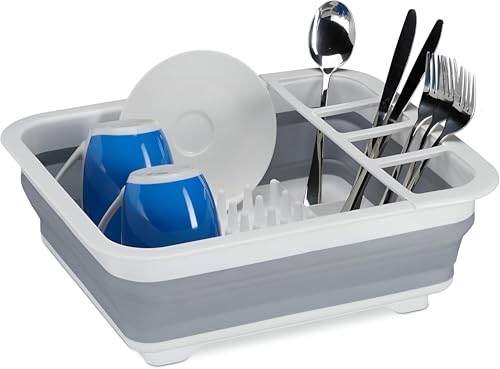 - Compact and portable, this dish drying rack is perfect for recreational cars, camping trips, holiday houses and more. Made from durable high-quality plastic and flexible silicone, its stainless steel construction ensures that it stands up to outdoor conditions while providing excellent functionality.