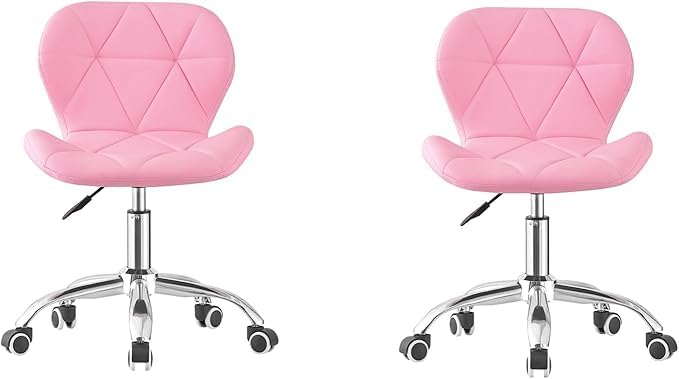 Modern Future - كرسي مكتب عصري، كرسي دراسة مريح دوار بارتفاع قابل للتعديل، كرسي مكتب من الجلد الصناعي مع أرجل كروم مرتفعة للمنزل وغرف النوم من مودرن فيوتشر (لون وردي - 2 قطعة)