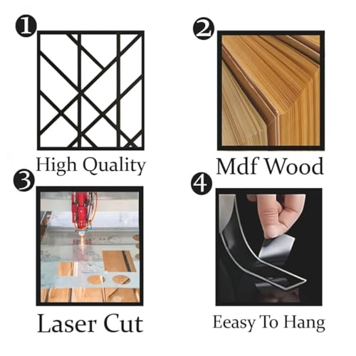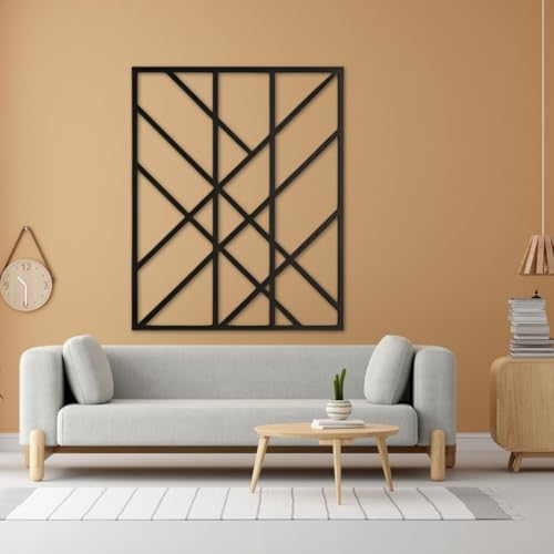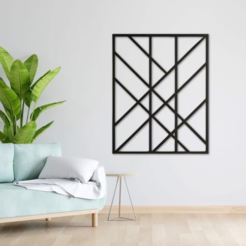 Generic - لوحة فنية جدارية عصرية هندسية من ام دي اف بلون اسود، متوفرة بـ 3 احجام - L 80×64 سم، M 60×48 سم، S 40×32 سم، ديكور منزلي تجريدي معاصر (مقاس M)