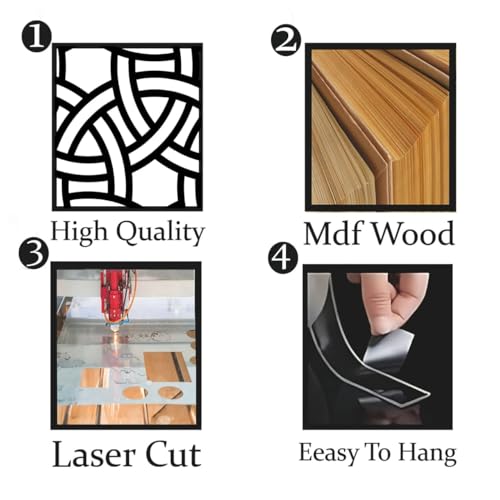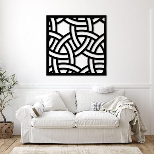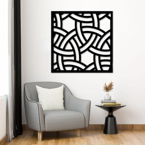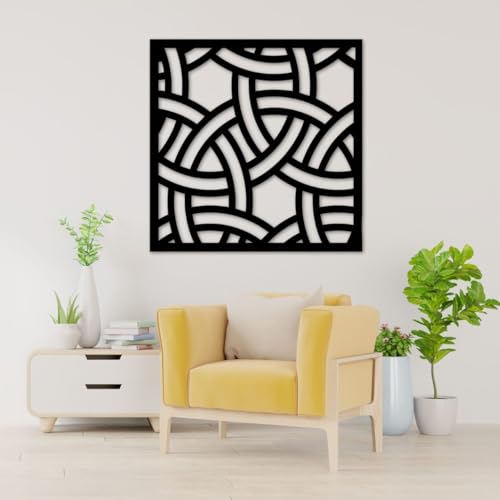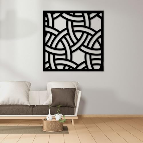 Generic - Modern Geometric MDF Wall Art Panel, Black, Square Pattern, Available in 3 Sizes - 80x80cm, 60x60cm, 40x40cm, Contemporary Home Decor for Indoor (Small)