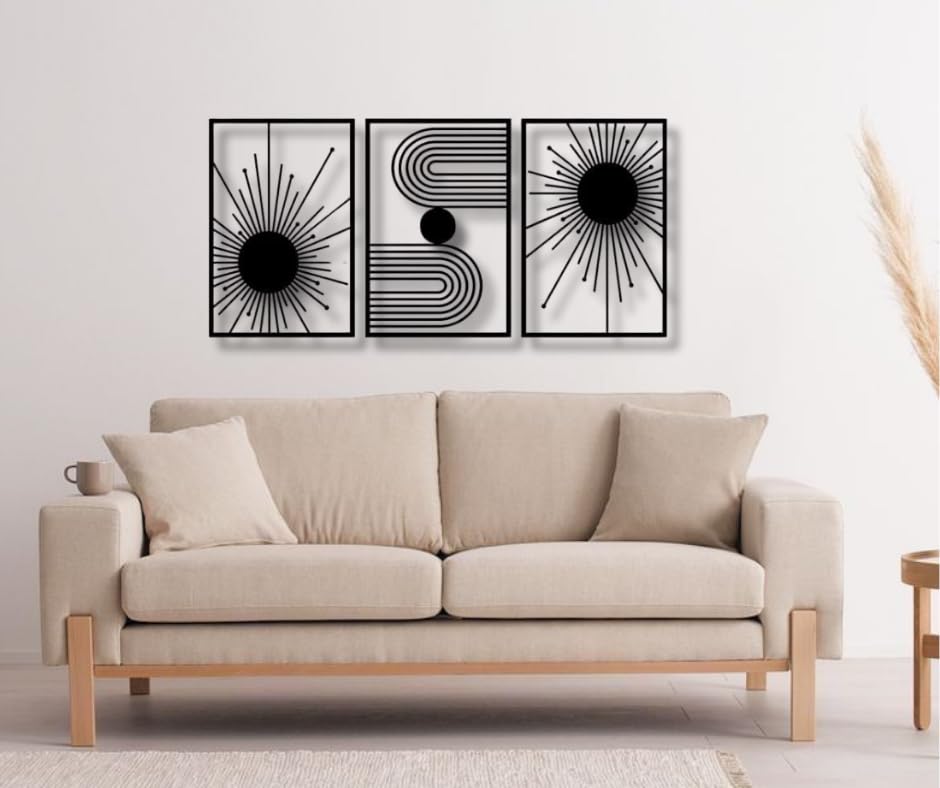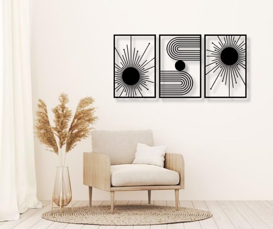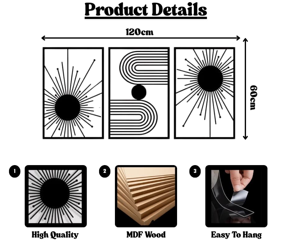 Generic - Modern Geometric Wall Art – 3-Piece Set (Each 40x60cm) – Abstract Sun & Line Design – Laser Cut MDF Panels – 120x60cm Total – Easy to Hang