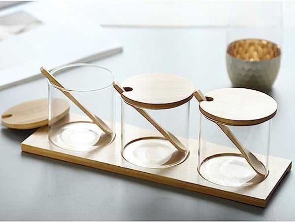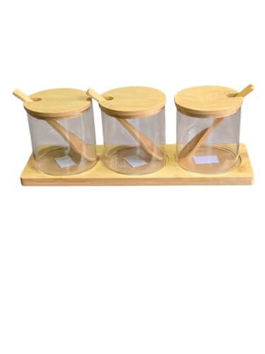 Generic - Modern Glass Storage Container Set, 3 Clear Containers with Bamboo Lids and Wooden Stand for Home Kitchen