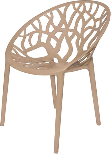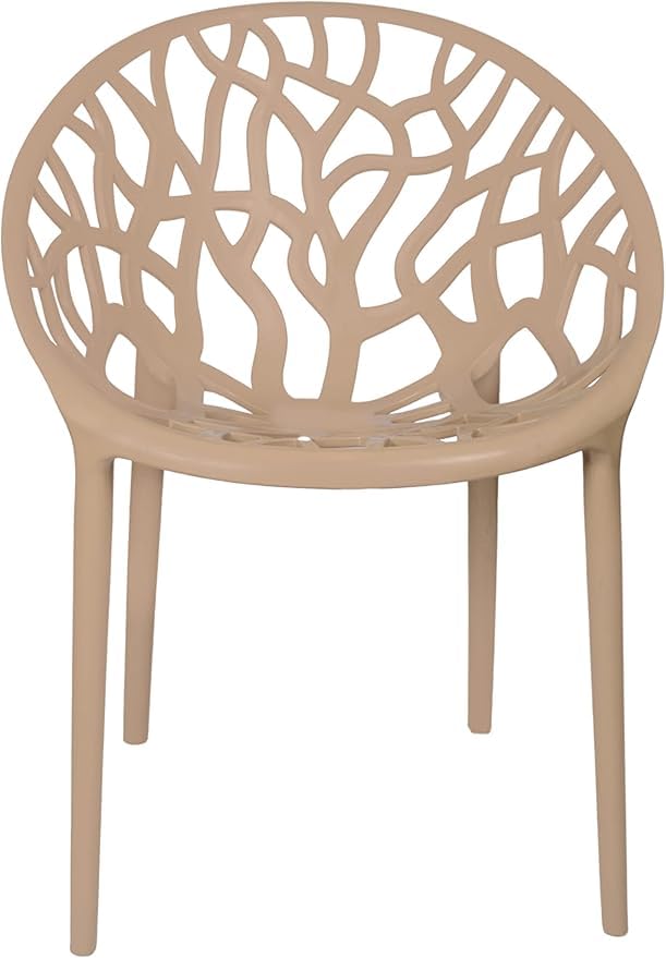 Generic - Modern Mesh Chair, Beige, Outdoor Seat With Carved Back, Plastic Garden Chair With Leaf Pattern
