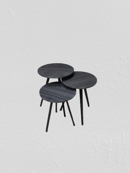 Generic - Modern Nesting Tables Set of 3, Marble Effect Round Tops, Dark Wood Legs, White (Round, Wooden Black)