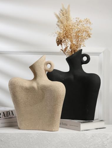 - التصميم: مجموعة من مزهريتين أنيقتين من السيراميك الأسود غير اللامع تتميز بتصميم عصري ممدود مع انحناءات منحنية لديكور المنزل المعاصر