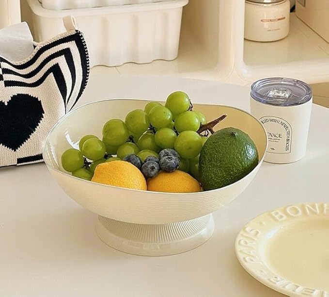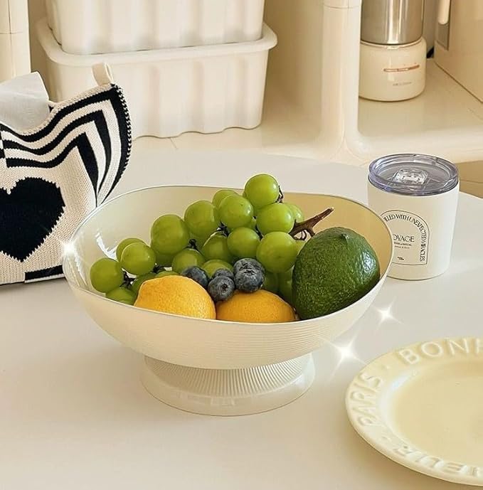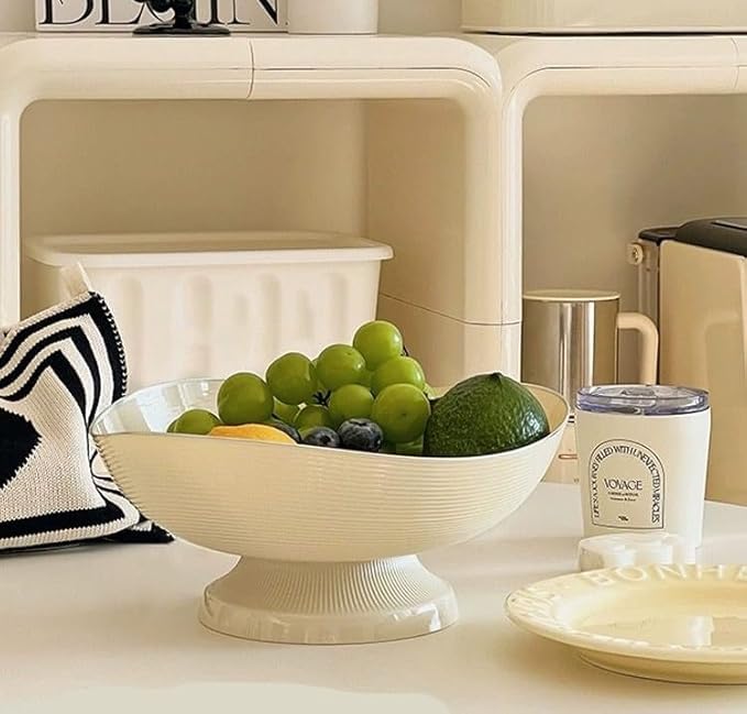 - تصميم عصري: وعاء فاكهة أنيق بقاعدة بيضاء مع نسيج مضلع معاصر وخطوط نظيفة، مثالي لديكور المنزل الحديث