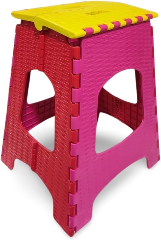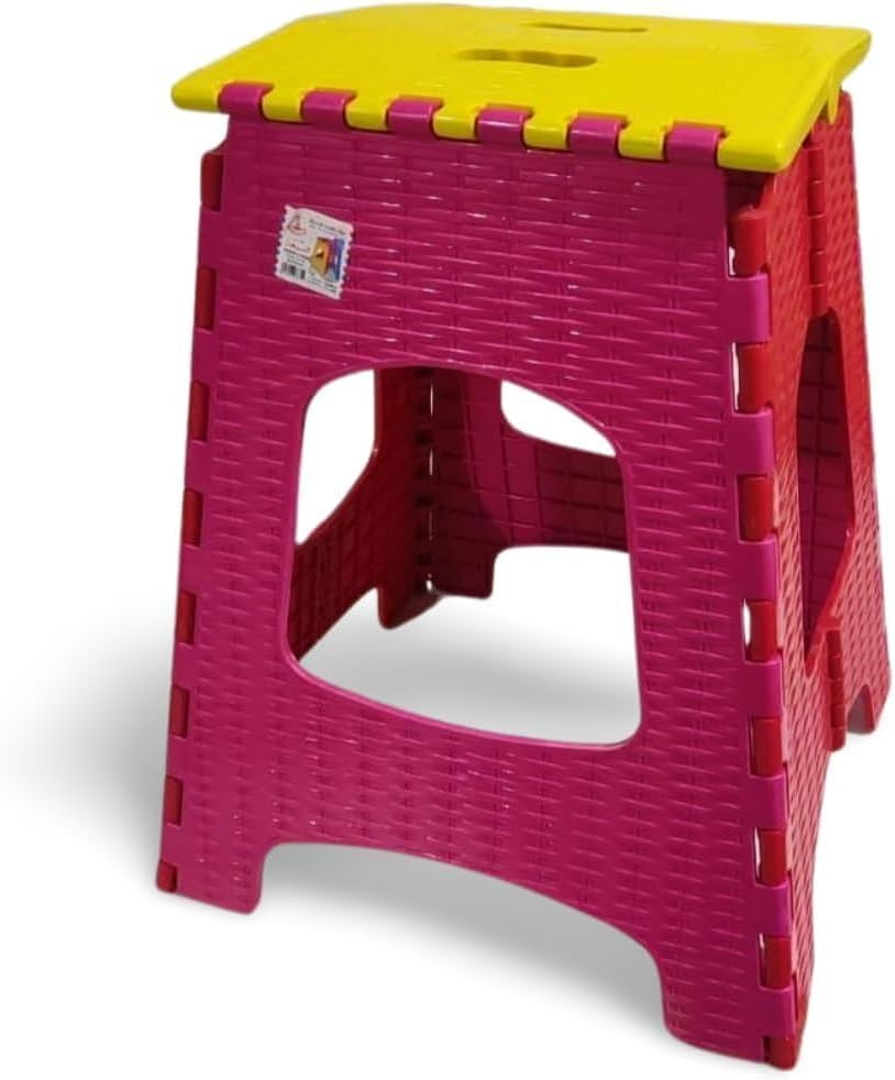 Generic - كرسي بلاستيكي عصري (كرسي بلاستيك مستطيل بتصميم عصري قابل للطي، وردي × أصفر)