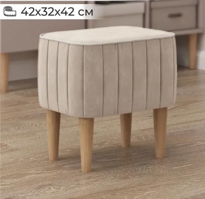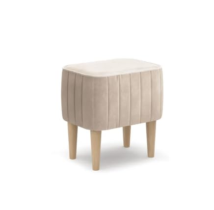 Generic - Modern Rectangular Velvet Ottoman with White Piping, Vertical Ribbed Footstool, Vanity Seat, Cream Beige Makeup Stool with Natural Wood Legs