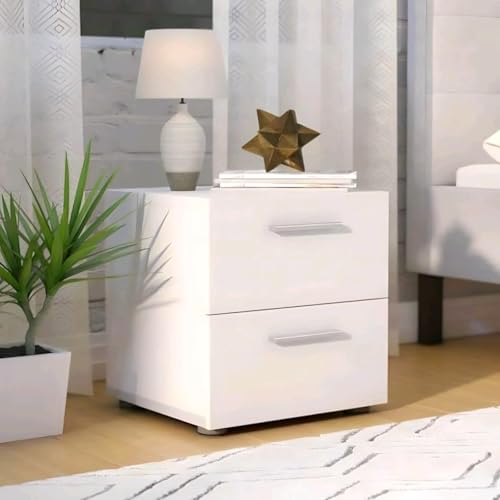 Generic - طاولة جانبية عصرية بعجلات مع درجين، خزانة تخزين بيضاء بمقابض فضية