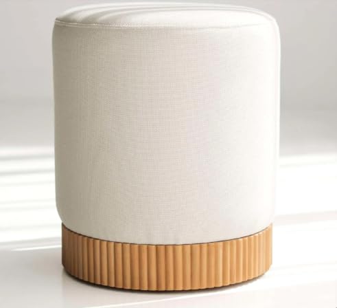 - ELEGANT DESIGN: Modern round ottoman features a sophisticated fluted wood base with off white upholstered fabric, adding a touch of elegance to any living room, bedroom, or vanity area