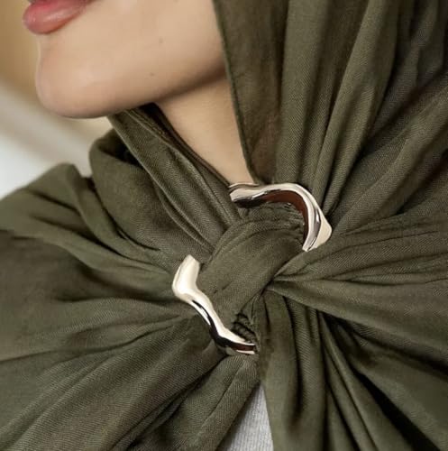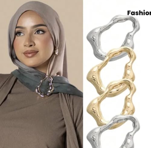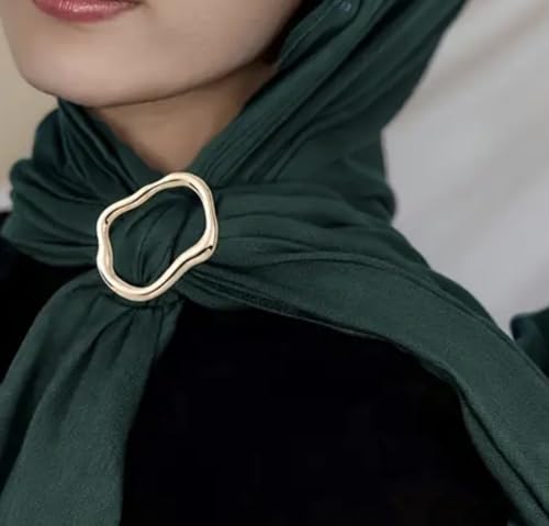Generic - مشبك وشاح معدني ذهبي غير متماثل للنساء، دبوس وشاح راس كبير مع تثبيت امن، لمسة نهائية معدنية انيقة، اكسسوار خاتم وشاح عصري، 6.5 سم × 4.5 سم
