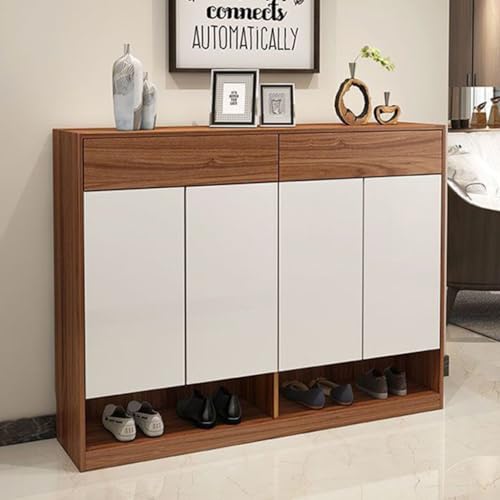 Generic - Modern Shoe Cabinet with Storage, 120 x 110 x 40 cm, Walnut and White, 4 Doors