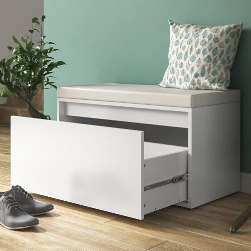 Generic - Modern Shoe Storage Unit with Padded Chair and Wide Bottom Drawer – Practical Shoe Cabinet for Entryways and Bedrooms – Stylish Space Saving Design