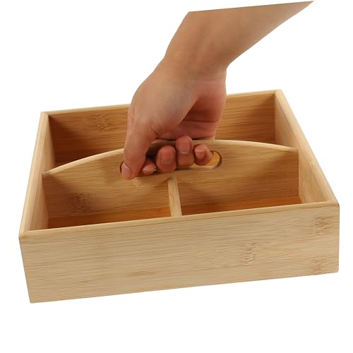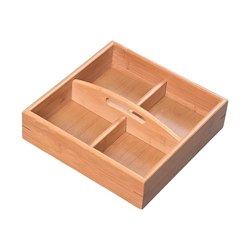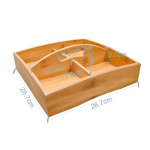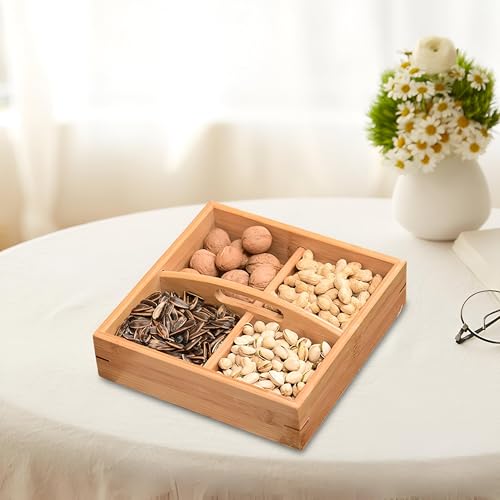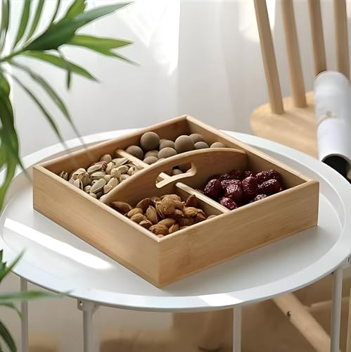 Generic - علبة وجبات خفيفة عصرية - علبة من الخيزران مصممة بشكل جميل بأربع مساحات تخزين، مثالية لتقديم الوجبات الخفيفة في الحفلات أو في المطابخ العصرية