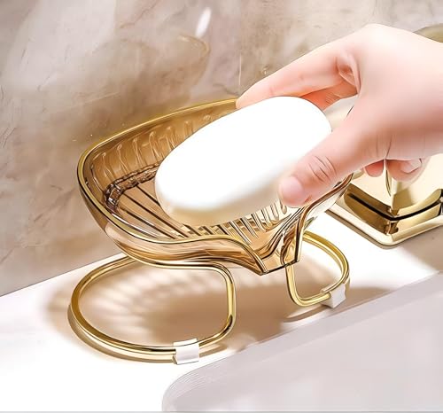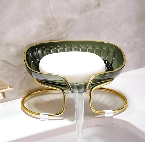 Generic - Modern Soap Holder with Metallic Gold Base & Acrylic Shell - Integrated Drainage, Double-Sided Tape for Secure Bathroom Installation (green)