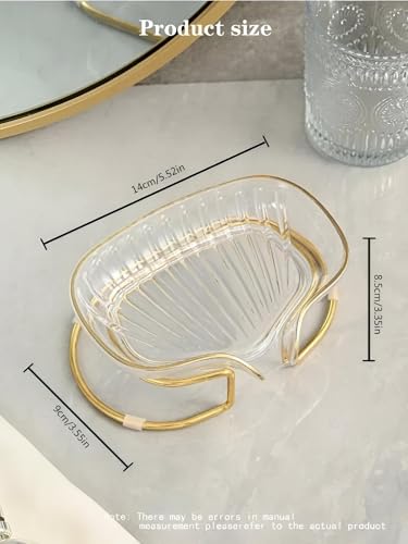 - The soap holder features an elegant seashell design with a premium gold metal base, adding a luxurious touch to any bathroom decor while being crafted from durable acrylic for long-lasting use.
