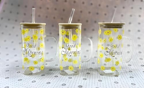Generic - مج مربع عصري - كوب زجاجي شفاف بتصميم دوار الشمس 400 مل، مقاوم للمشروبات الساخنة والباردة، لا تشوبه شائبة للهدايا وديكور المطبخ او الاستمتاع بالمشروبات اليومية.