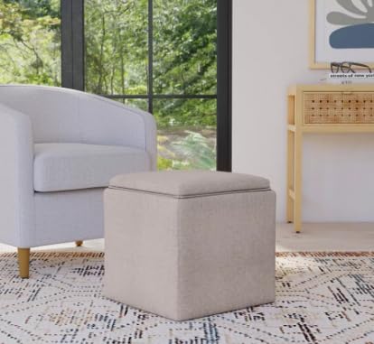 Generic - مسند قدم مربع عصري بتصميم مكعب مع مسند قدم قماشي انيق مع غطاء قابل للازالة، طاولة جانبية متعددة الاستخدامات ومقعد فانيتي لون بيج