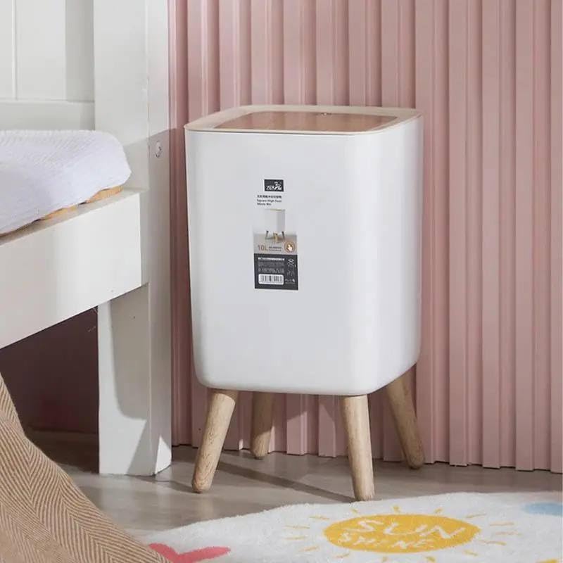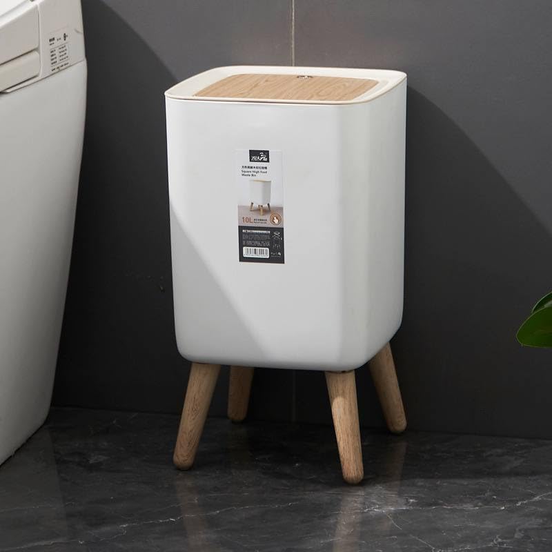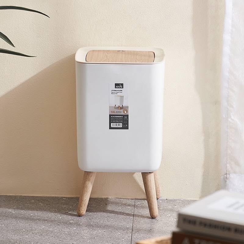 - MODERN DESIGN: Sleek square basket featuring a minimalist white exterior, wooden top lid, and sturdy wooden legs for an elegant contemporary aesthetic