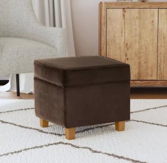 Generic - مسند قدم مخملي مربع عصري مع ارجل خشبية، لون بني فاتح، مسند قدم منجد، غطاء قابل للازالة، مقعد مميز متعدد الاستخدامات