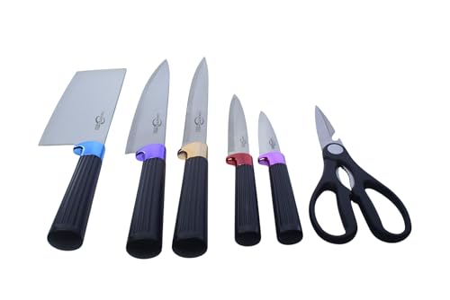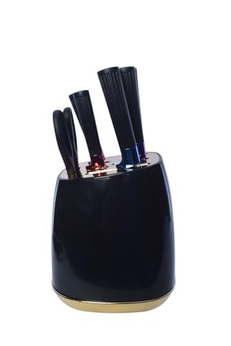 Generic - Modern Stainless Steel Knife Set With Table Top Storage Rack, 7Pcs - Black