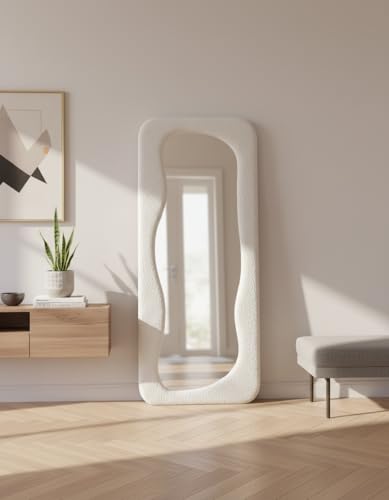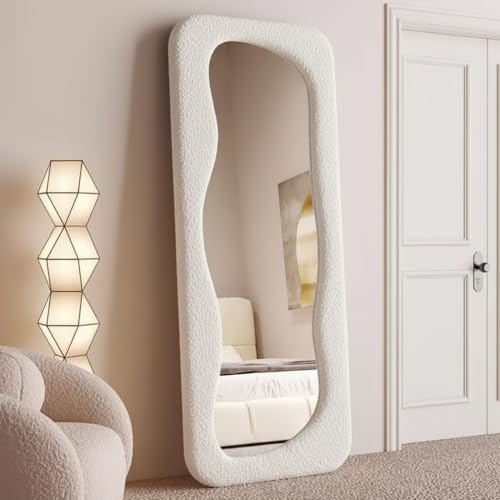 Generic - مراة ستاند عصرية 170 × 60 سم - اطار خشبي ام دي اف مع تنجيد من قماش الباندا الفاخر - مرايا ديكور بطول كامل لغرف النوم وغرف الملابس - من نو كومنت فيرنتشر (ابيض)
