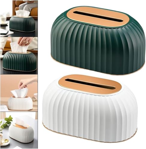 Generic - Modern Tissue Box Cover – Stylish Plastic Tissue Holder with Vertical Stripe Design for Living Room, Office Desk, Dining Table, Bedroom & Car – Durable, (Dark green (one piece))