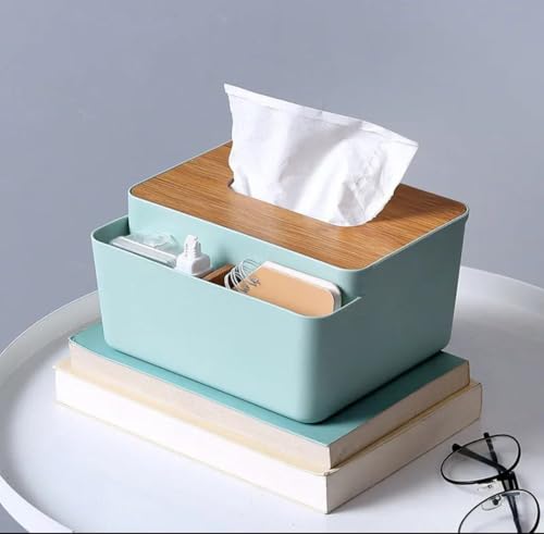 Generic - Modern Tissue Holder with Wooden Lid, Versatile Storage Organizer, Elegant White Design for Home or Office - 18cm x 14.5cm x 9.3cm (Green)