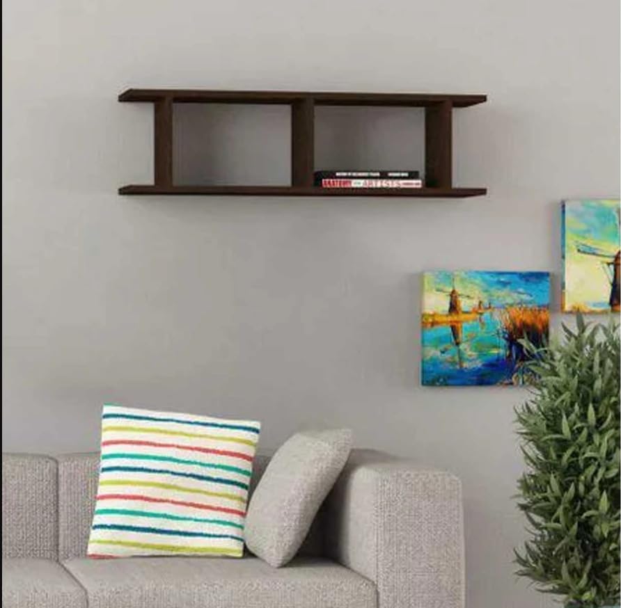 Generic - Modern Wall-Mounted Floating Shelf, Wooden H-Shaped Design, Dark Brown, 2-Tier Storage Display Rack,Shelf unit, 100 cm, brown