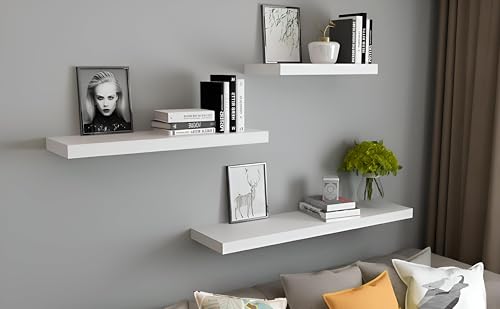 Generic - مجموعة رفوف حديثة من 3 رفوف للتثبيت على الحائط باللون الأبيض بمقاسات 60 و50 و40 سم لتعزيز ديكور المنزل مثالية لغرفة المعيشة والمطبخ والحمام وغرفة النوم