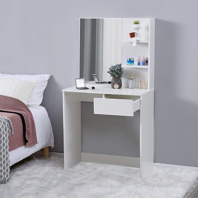 - STORAGE SOLUTION: Includes one spacious drawer and multiple display shelves for organising makeup, perfumes, and beauty accessories