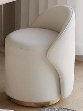 Generic - Modern White Dressing Chair Leather Padded with Gold Base – Luxury Round Pouf with Ergonomic Backrest – Elegant Bedroom & Reception Stool with Modern Design Space Saving