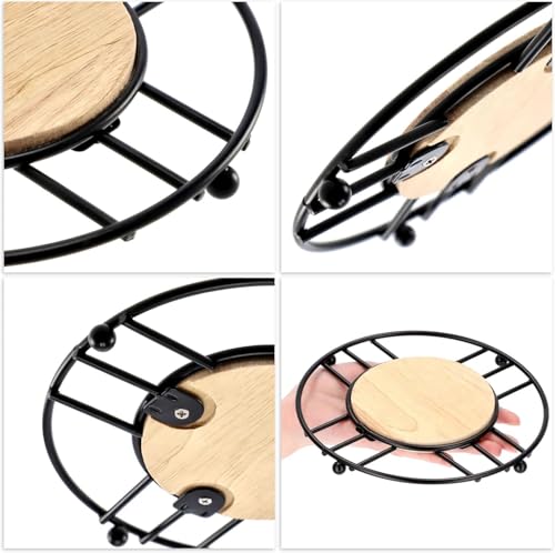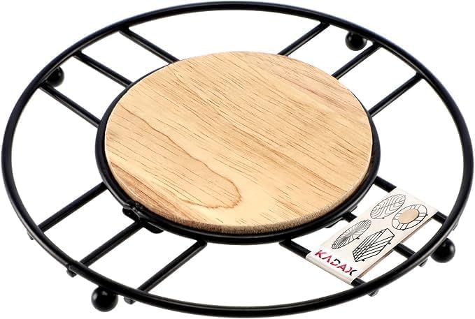 Generic - لوح تسخين عصري من الخشب والمعدن - قاعدة اكواب سلكية دائرية سوداء للاواني والمقالي والاطباق - واقي سطح الطاولة مقاوم للحرارة