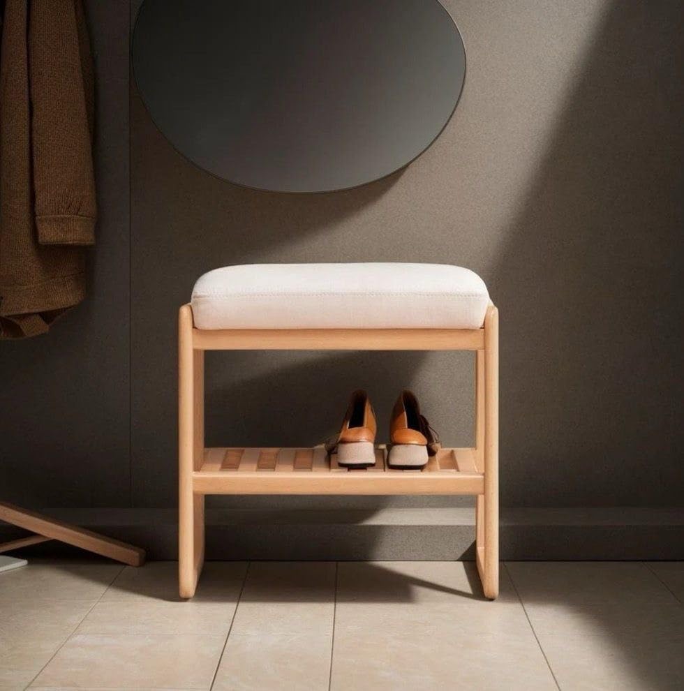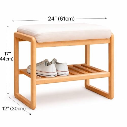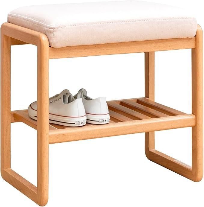 Generic - Modern Wood Shoe Organizer Open Design Beige Padded Seat – Practical Shoe Rack with 2 Shelves for Entryway Light Natural Wood