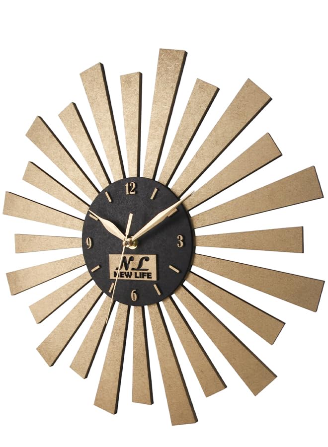 Generic - Modern Wooden Round Wall Clock 40 CM With Wood Design - Analog-Quartz-Black and Gold Color - LV19