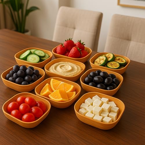 Generic - Modern Wooden Tasley Plate Set with Stand - 10 Pieces + Stand, Perfect Distribution for Nuts, Appetizers, Fruits, Light Glossy Plastic, Durable, Easy to Clean, Suitable for Home and Guests