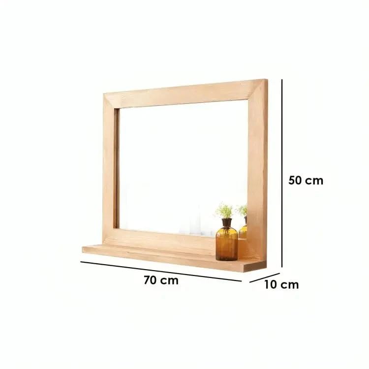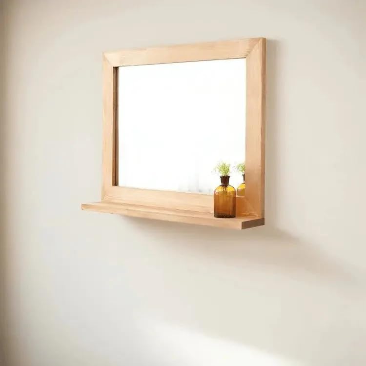 Generic - Modern Wooden Wall Mirror with Shelf, Natural Wood Frame, Minimalist Bathroom Vanity Design, Wall-Mounted Storage